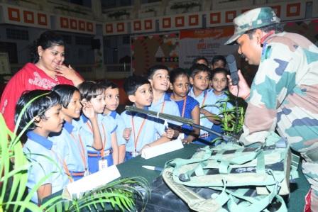 The school was well laid out with various weapons with army personnel manning them with vigilant eyes. The weapons that were displayed were 5.56mm INSAS Rifle, 5.56mm INSAS Light Machine Gun, 51mm MORTAR, 7.62mm Medium Machine Gun, 81mm MORTAR, 9mm Carbine Machine Gun Pistol, No 36 Hand Grenade.
