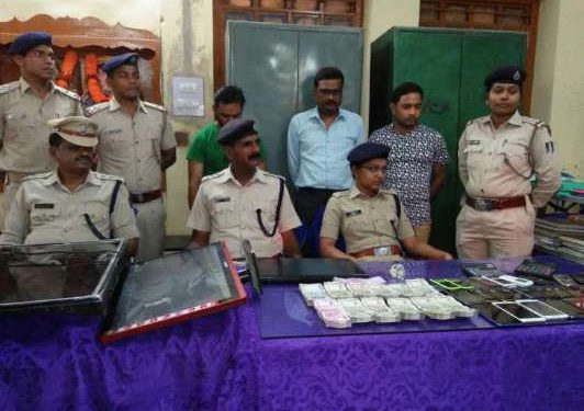 Three persons were arrested and cash totaling Rs 9.4lakh was seized from their possession. A laptop, some mobile phones and a calculator were also seized. The three were Md Parvez Alam, Md Makasud Alam and Uttam Sahu of Nala Road.