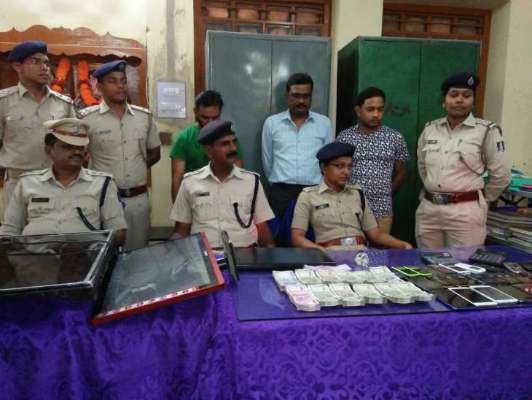 Three persons were arrested and cash totaling Rs 9.4lakh was seized from their possession. A laptop, some mobile phones and a calculator were also seized. The three were Md Parvez Alam, Md Makasud Alam and Uttam Sahu of Nala Road.