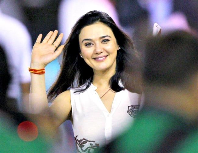 Kings XI Punjab co-owner Preity Zinta celebrates her team's victory over Kolkata Knight Riders during an IPL match in Mohali. (Photo: PTI)