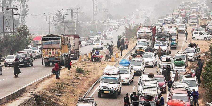 The traffic on the highway plies alternatively from the capital cities of Jammu and Srinagar to ensure smooth movement of the vehicles. (Image: PTI)