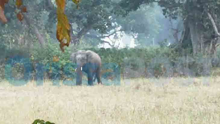 Villagers first spotted the wild pachyderm feeding upon ripened paddy crops that were stacked in the village after the latter strayed into Pradhan Sahi of the village from the nearby Bankurupal jungle.
