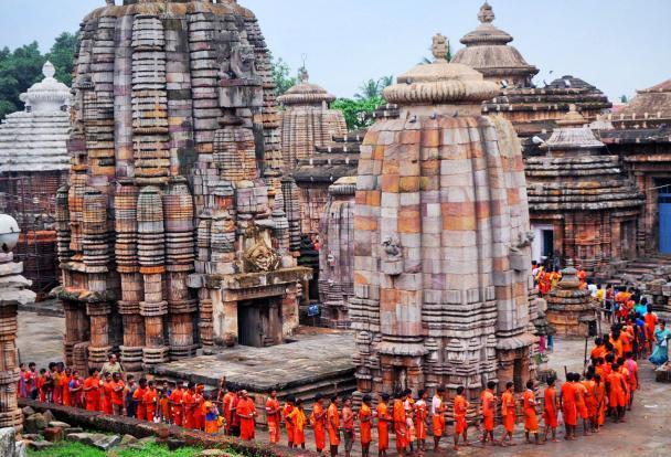 Bhubaneswar: Thousands of ‘kanwariyas’ or ‘Bol bom’ devotees, carrying pots full of sanctified water on their shoulders, waited in long queues to offer the holy water on Lord Lingaraj here on the first Monday of Hindu month Shravan.