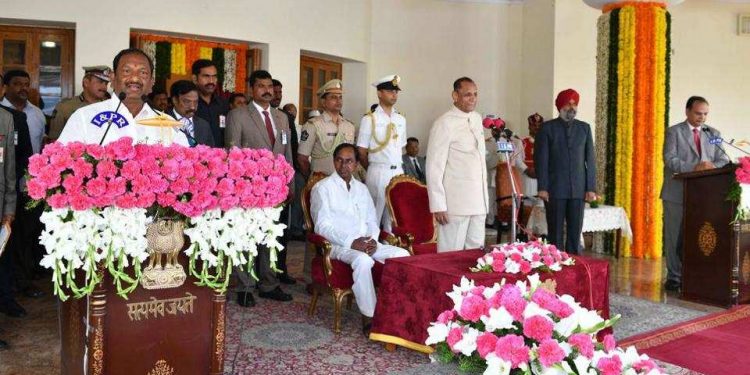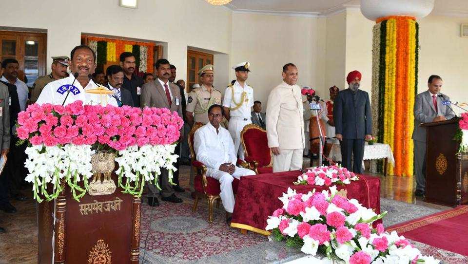 Six new faces — S Niranjan Reddy, Koppula Eashwar, Errabelli Dayakar Rao, V Srinivas Goud, Vemula Prashanth Reddy and Ch Malla Reddy — found berth in the Council of Ministers. A Indrakaran Reddy, Talasani Srinivas Yadav, G Jagadish Reddy and Etela Rajender, who were part of the cabinet in Rao’s previous term, returned as ministers.
