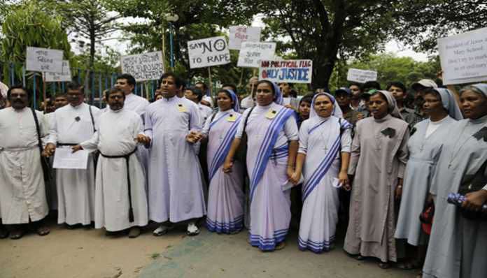 The protest was called due to the fact that since the case was registered 75 days ago, the police have taken 12 statements from the victim while only one from the accused bishop.