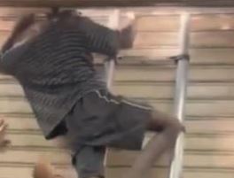 In Ghaziabad, Uttar Pradesh, a thief got his neck stuck in a clinic’s metal rolling shutter while breaking in last night. He hung there until afternoon, when firefighters rescued him using a ladder. pic.twitter.com/YnmrZT4IrO