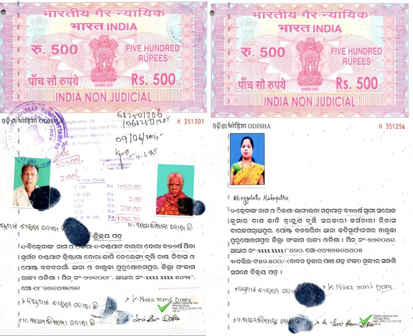 The disputed land includes two plots under Khata No-390 in the name of Dandapada Bauri Dora of the Telugu community from Badabargan village under Ranigam mouza in Purushottampur tehsil. Plot No-3062 measuring 0.340 decimal and Plot No-3063 measuring 0.453 decimal were allegedly sold June 6 to Bhagyalata Mohapatra of Birajagannathpur village, with her husband Saroj Kumar Das listed as the purchaser. The transaction was recorded under Registration Document No-10682501285.