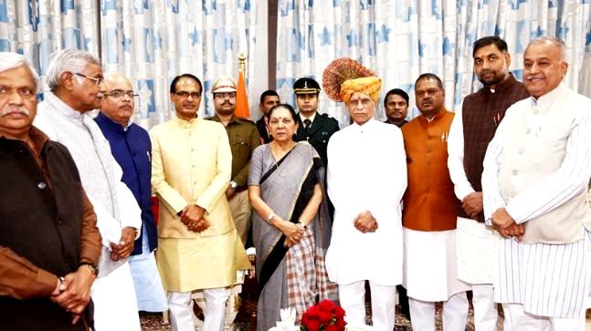 Newly inducted ministers with Governor Anandi Ben Patel and CM Shivraj Singh Chouhan (Twitter)
