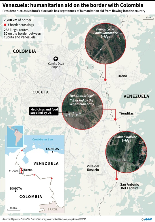 Signaling his growing disquiet, Maduro announced Thursday that the border with Brazil — which along with Colombia is one of the main potential avenues for aid delivery — would be “completely and absolutely” closed from 8:00 pm (0000 GMT) until further notice.