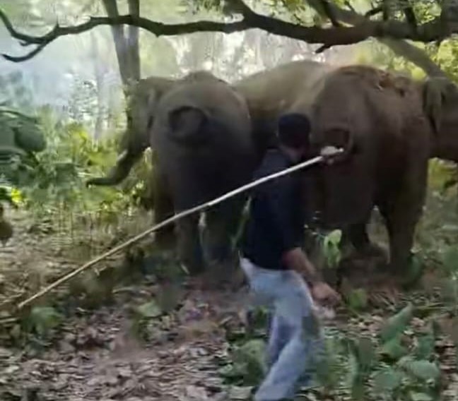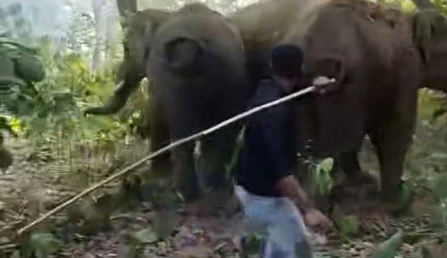 Keonjhar: A video showing a young man beating an elephant herd with a stick has gone viral on social media, prompting outrage from wildlife activists. The incident, which occurred in Keonjhar district, highlights the ongoing conflict between humans and elephants in the region. Though the Forest department has been attempting to drive the elephants back into the forest, these efforts have often been unsuccessful. As a result, local residents have resorted to various methods to ward off the elephants, sometimes leading to aggressive confrontations. These altercations have, on occasion, resulted in human injuries and deaths.