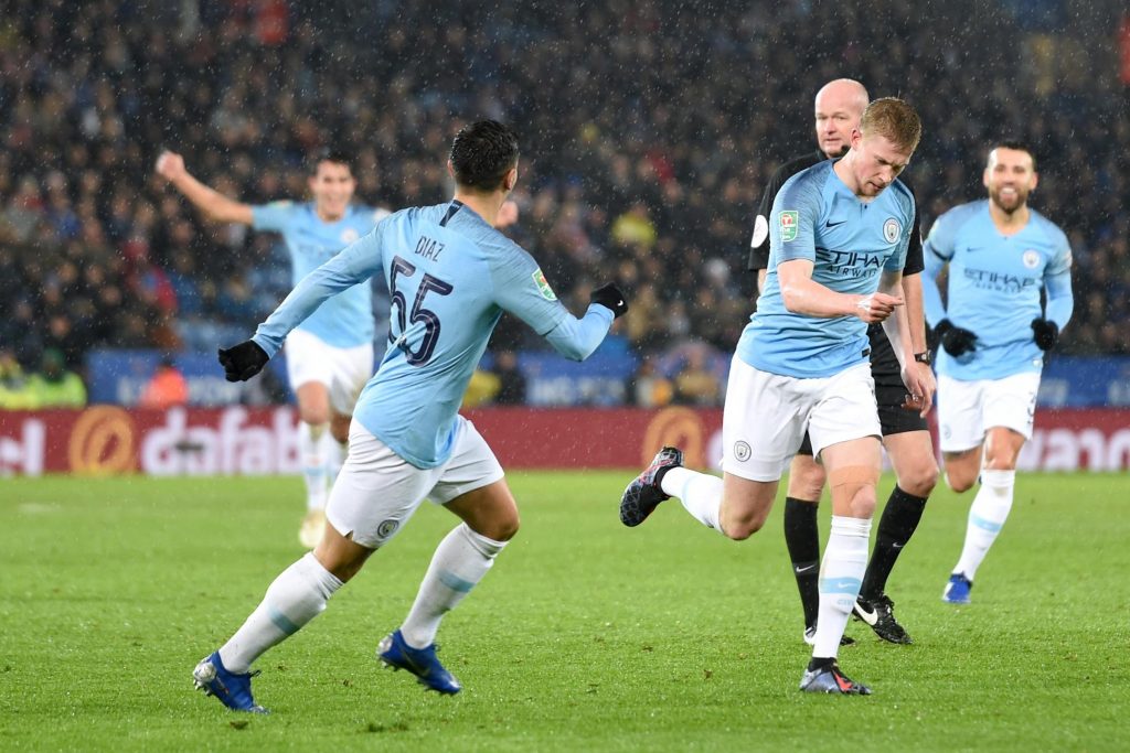 The game finished 1-1 in regulation time, with Kevin de Bruyne marking the first start of his latest comeback from injury with the opening goal from the edge of the area for Man City before Marc Albrighton equalised.