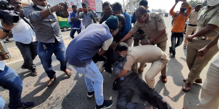 Khurda: Frustrated over the lack of action to trace the fraudsters, a man who has been duped off Rs 17 lakh online attempted self-immolation Monday in front of Collectorate office here. He has been identified as Brajabandhu Sahu of Bakoi village under Bolagada block. Sahu reached in front of the office at around 11.00am, and then tried to set himself on fire after dousing himself with kerosene. Luckily, some cops were present at that time and they saved Sahu from suffering grievous injuries.