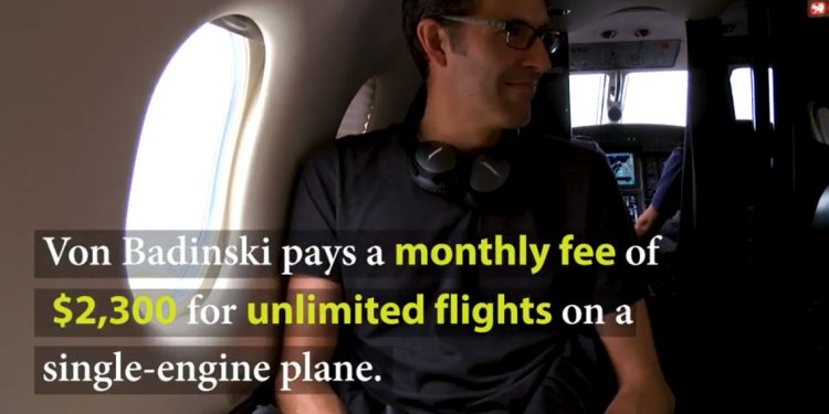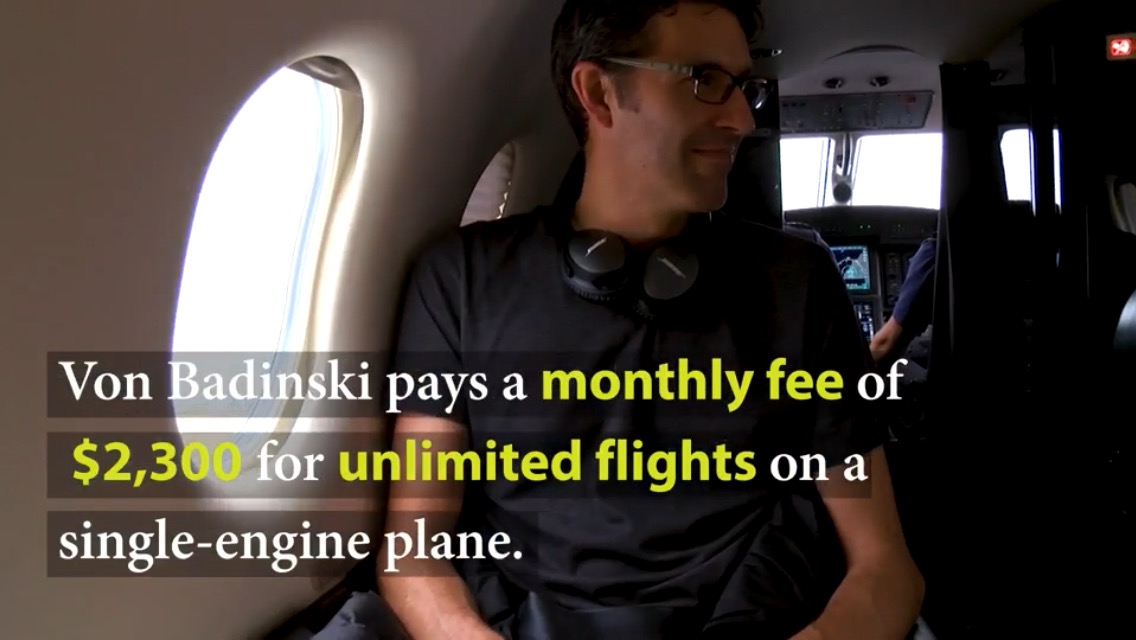 Five days a week, he rises at 05:00 for the 15-minute drive to Bob Hope Burbank airport, for a 90-minute flight to Oakland, located 353 miles (568km) north west. For a monthly fee of $2,300, he can access unlimited flights on a single-engine turboprop airplane.