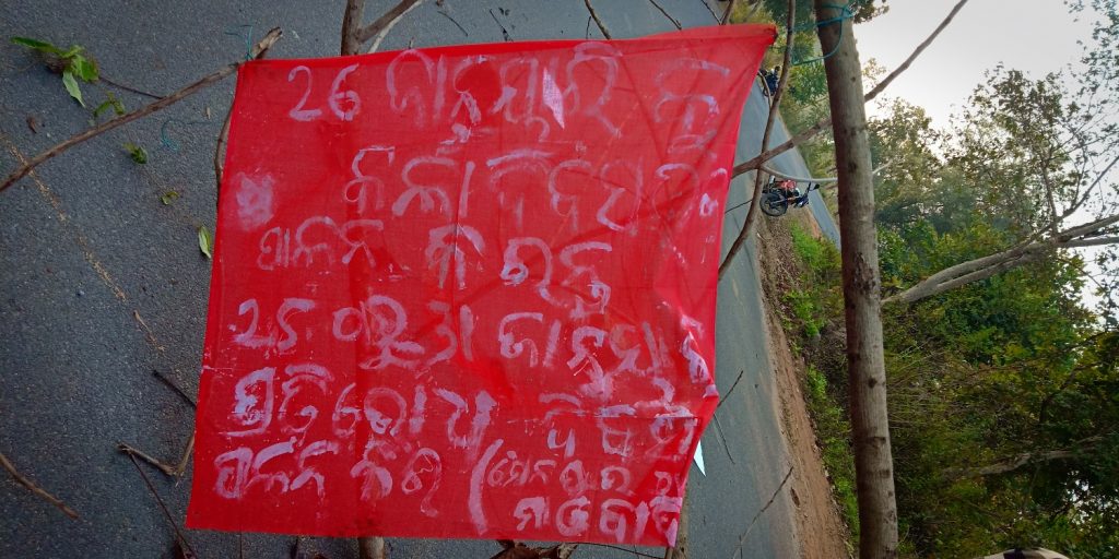 Jharigaon: Maoist posters and banners displayed by the rebels of Menpur division were found on Khalipani Road in this block of Nabarangpur district Friday. The Maoists also blocked the road using a tree.