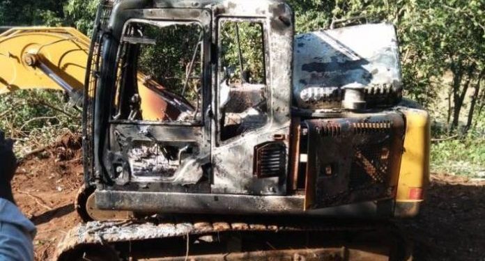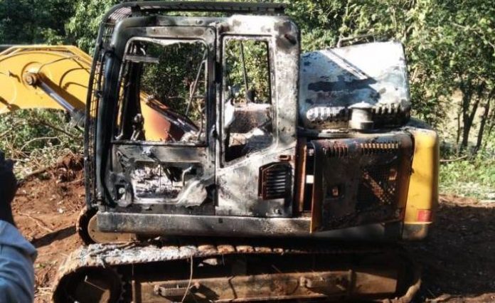 Malkangiri: A group of armed Maoists stormed into a road construction site along the Odisha-Chhattisgarh border near Patraput area here in Malkangiri district and torched a JCB machine used for road construction work late Thursday night.