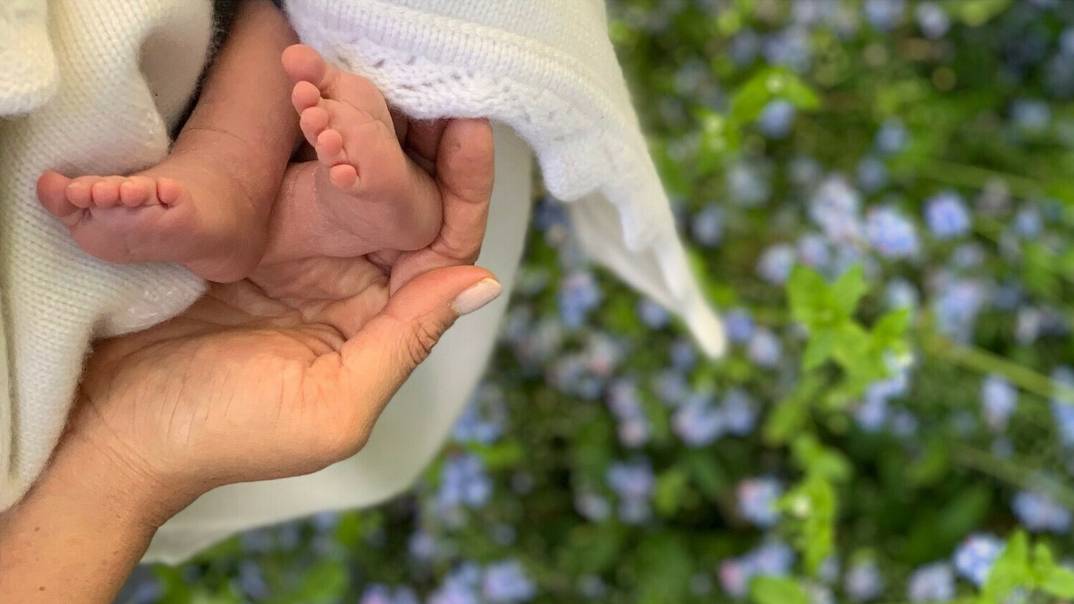 The image posted Sunday on Instagram showed Meghan’s hand cradling the feet of her son, Archie Harrison Mountbatten-Windsor, with a bed of spring flowers below serving as the background.