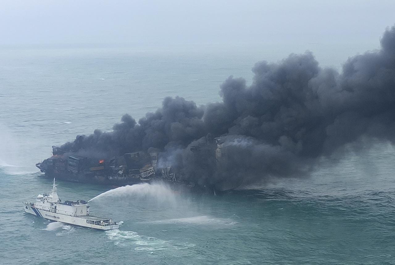 The extreme fire, damage to the containers and prevailing inclement weather has caused the vessel to tilt to starboard, resulting in falling of containers overboard. Concerted joint efforts are in progress by two ICG ships and four tugs of Sri Lankan authorities to douse the fire.