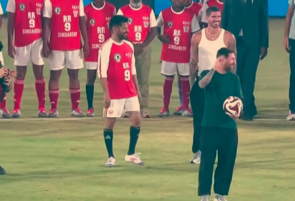 Messi presented the GOAT Cup to the winning team of a 7-a-side exhibition match, Singareni RR 9, which was representing Reddy.