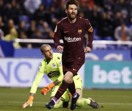 The Argentinian star scored a brilliant 30th La Liga hat-trick as Barca survived a scare to beat Deportivo La Coruna 4-2, wrapping up the club’s 25th league title with four matches to spare and keeping their hopes of an unbeaten season alive.