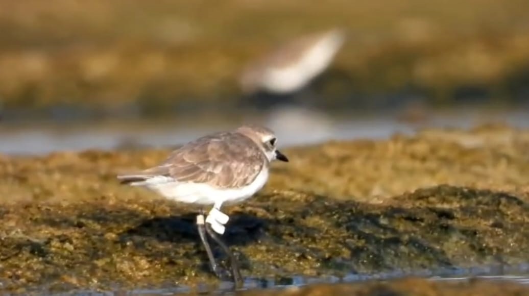 Chhatrapur: An unknown tag attached to a migratory bird was spotted near the Rushikulya estuary Thursday morning. The bird, identified as a greater sand plover, was captured by local environmentalist Rabindranath Sahu on his camera.