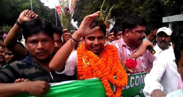 Rourkela: Muktikanta Biswal, who walked around 1,550 km to meet Prime Minister Narendra Modi in New Delhi, Sunday morning received a warm welcome during his return to Rourkela.