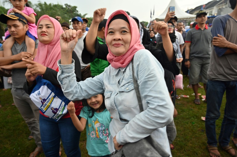 The promise of a legendary crooner like Irama, clad in a white jumpsuit, is what got housewife Alima Kholil out to a huge rally for Subianto in vote-rich West Java, despite pouring rain.