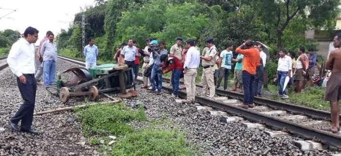 After the incident, the labourers fled the spot leaving the machine on the tracks.