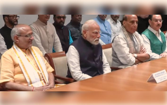Modi, Shah, senior ministers Pralhad Joshi, Dharmendra Pradhan and other NDA leaders, including TDP leader and Union Minister K Ram Mohan Naidu, Shiv Sena leader