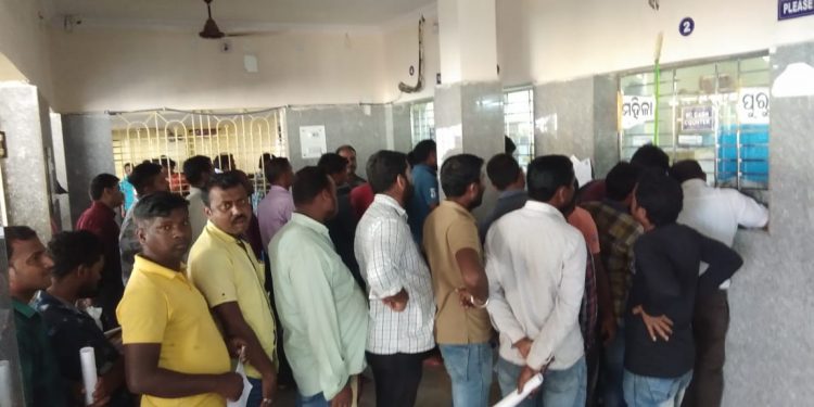 Driving licence applicants make a beeline outside Keonjhar RTO, notwithstanding the district administration’s directive to avoid large gatherings in public places, Monday