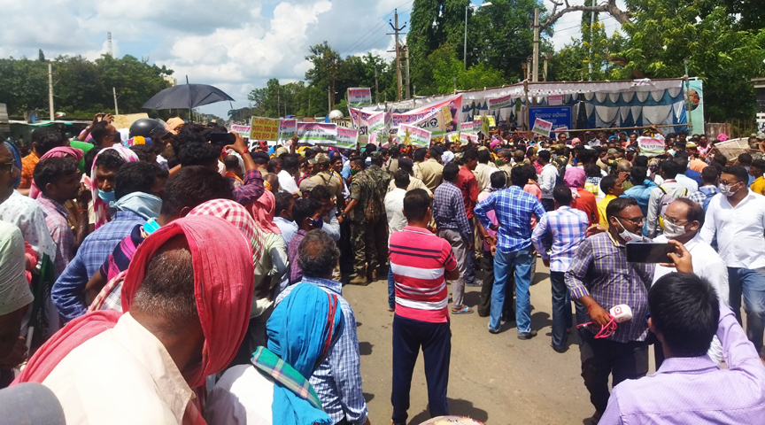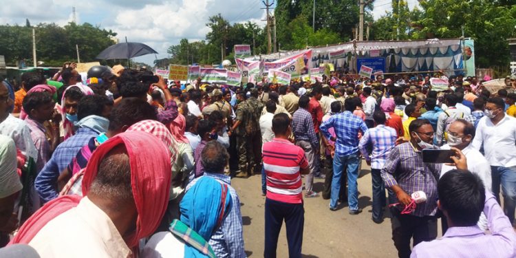 Nuapada: Angry over short supply of urea, its black marketing and drought situation, hundreds of farmers united under Jay Kishan Sangram Parishad undertook a Chasi Bachao padayatra from Kurumpuri to Nupada Collector’s office Wednesday.