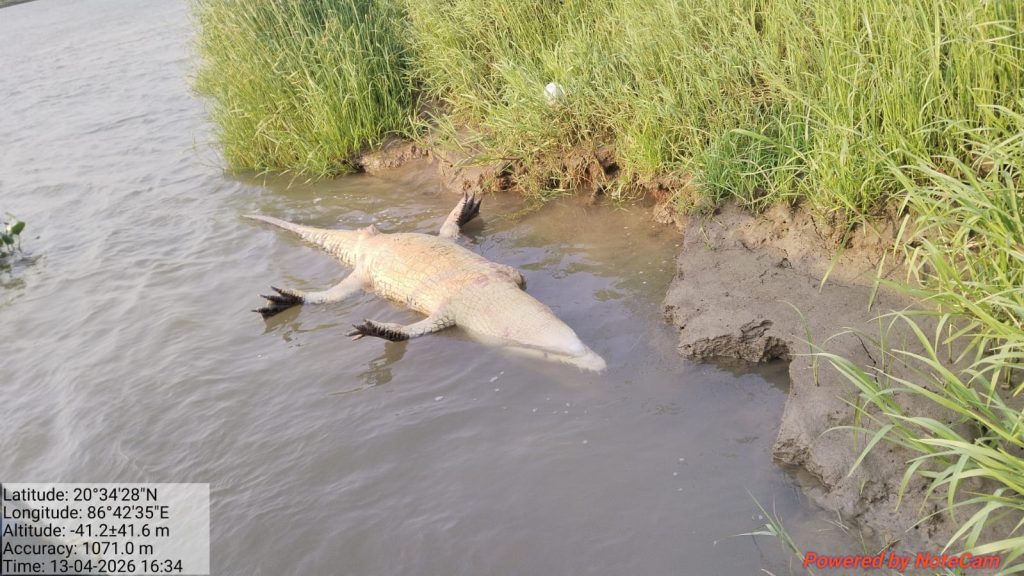 Rajnagar: A crocodile measuring 11 feet 3 inches in length was found dead in the Hansua River in Rajnagar area of Kendrapara district, forest officials said Tuesday.
