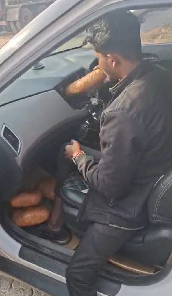 Upon detailed inspection, police detected two concealed chambers—one inside the front dashboard and another beneath the rear seat. A mechanic was called to open the hidden compartments, from which sealed packets of ganja were recovered. The total quantity seized was 24 kg.