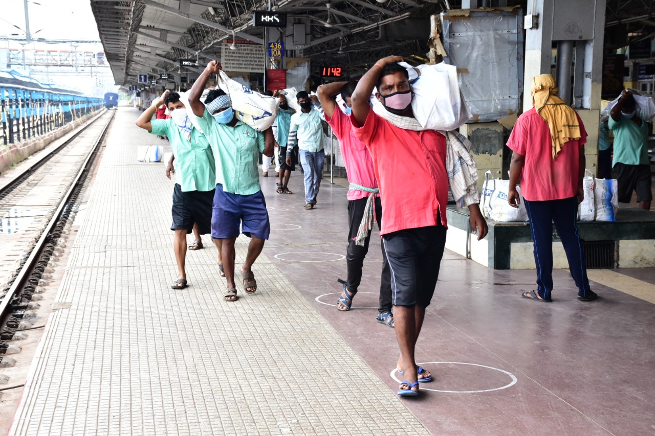 Shree Satya Sai Seva Organisation distributes essential items to porters at Bhubaneswar station