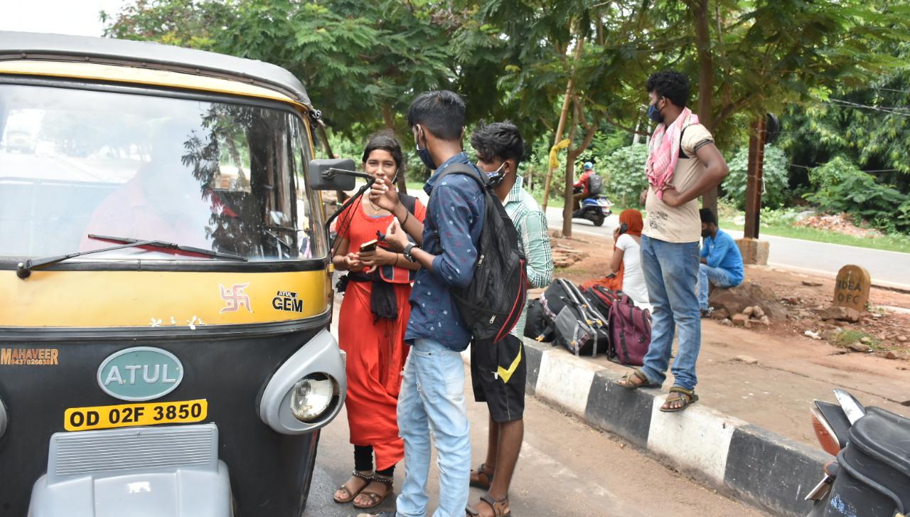 People arriving in Bhubaneswar hire auto-rickshaws at Jayadev Vihar
