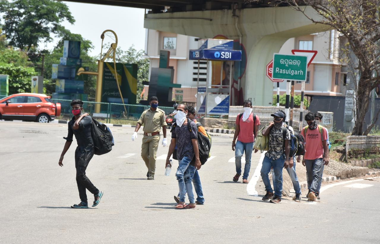 Migrant workers undergo registration at Rasulgarh Square in Bhubaneswar