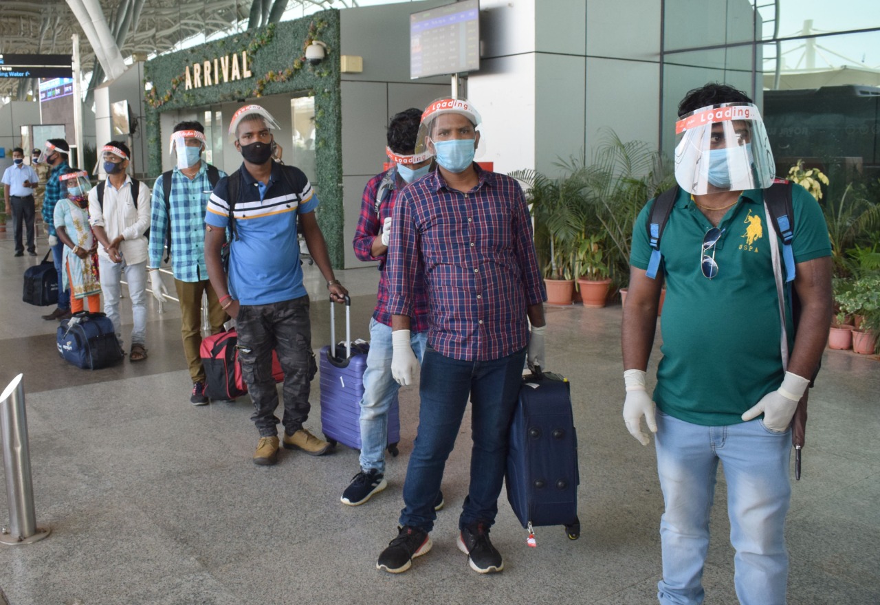 Odia workers from Manipur leaving for their native places from Bhubaneswar airport