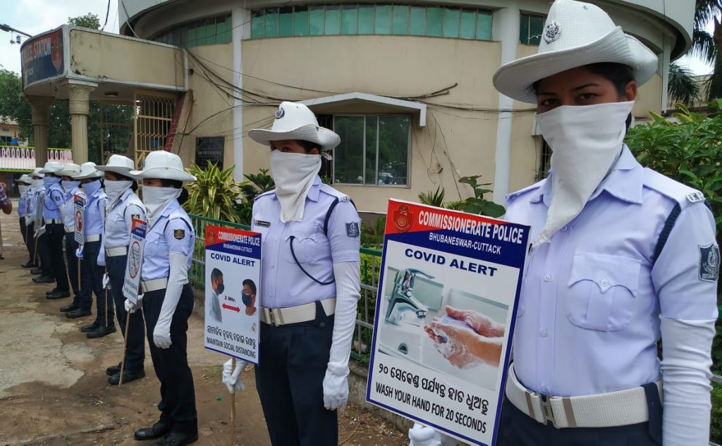 Traffic cops raise awareness on COVID-19 at Madhupatna square in Cuttack