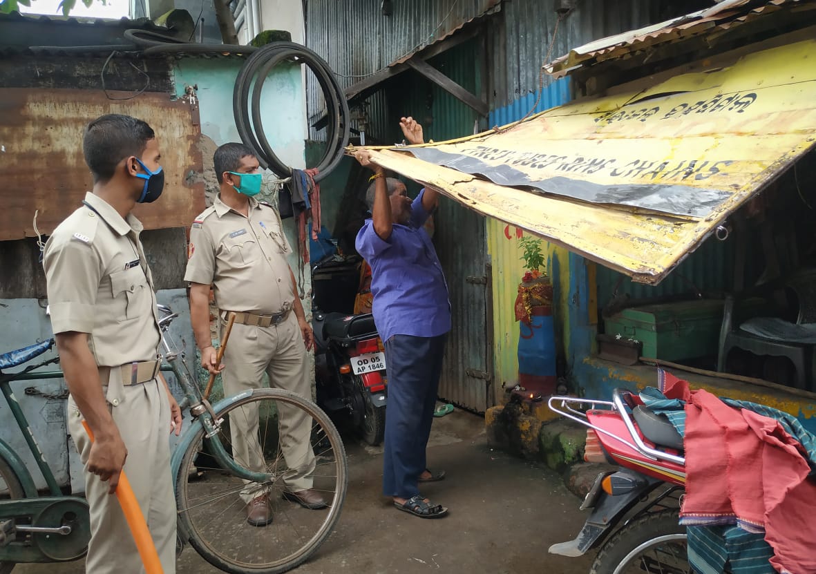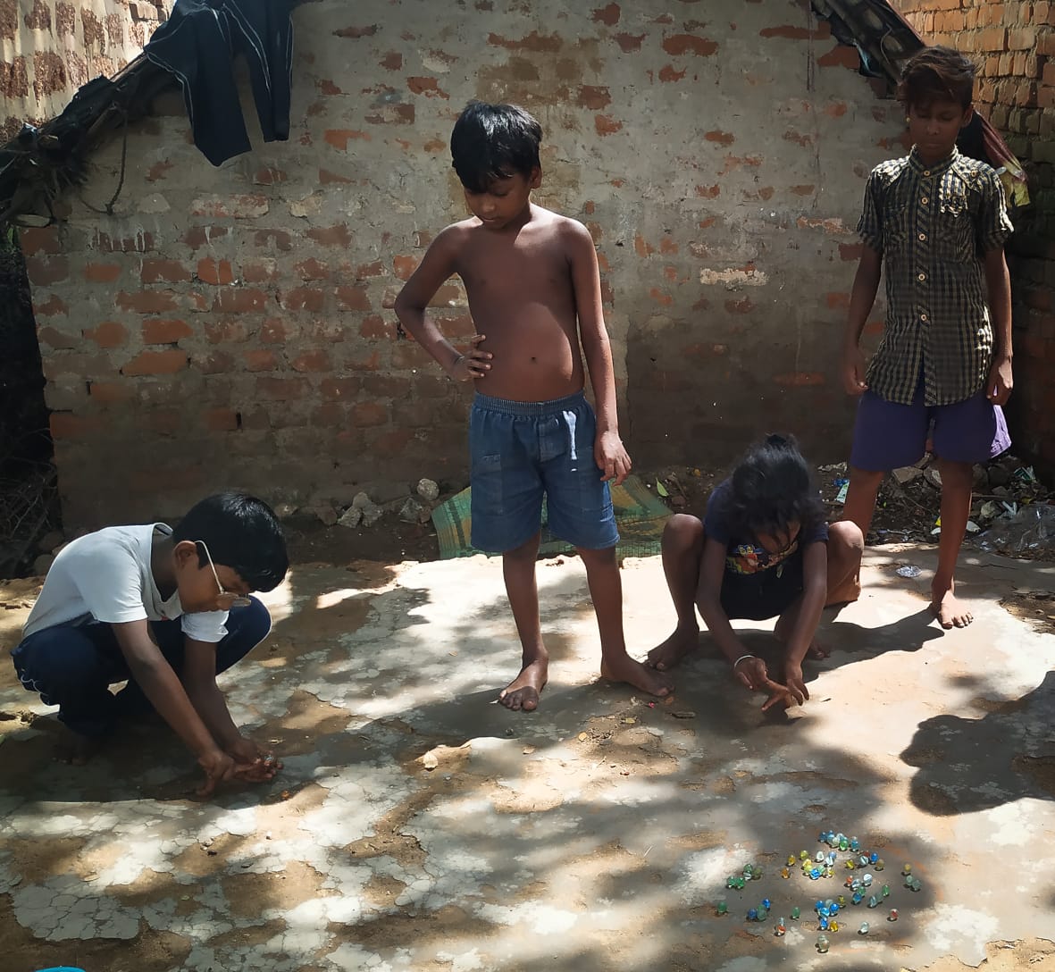 Kids play with marbles at Rajabagicha area in Cuttack during shutdown