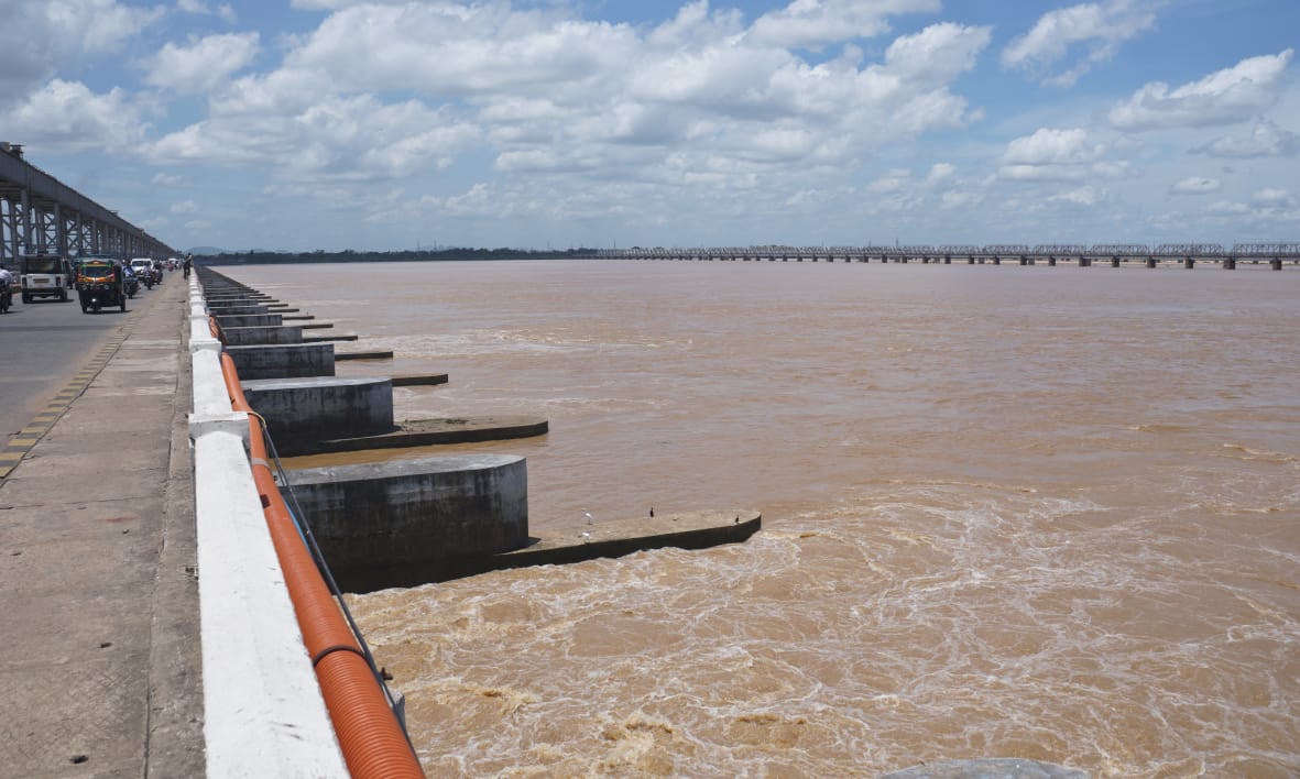 Mahanadi floodwaters at Jobra anicut