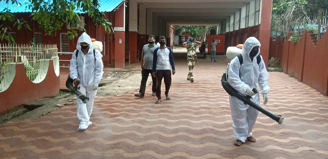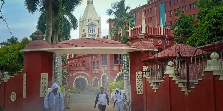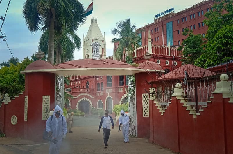 The Orissa High Court in Cuttack being thoroughly sanitised, Sunday, after one of its employees was tested positive for Covid-19