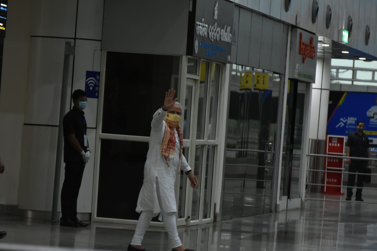 PM Modi waves at reporters while departing Odisha after aerial survey of cyclone damage