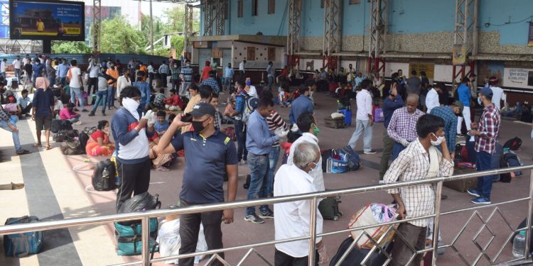 Passengers ignore social distancing norms at railway station