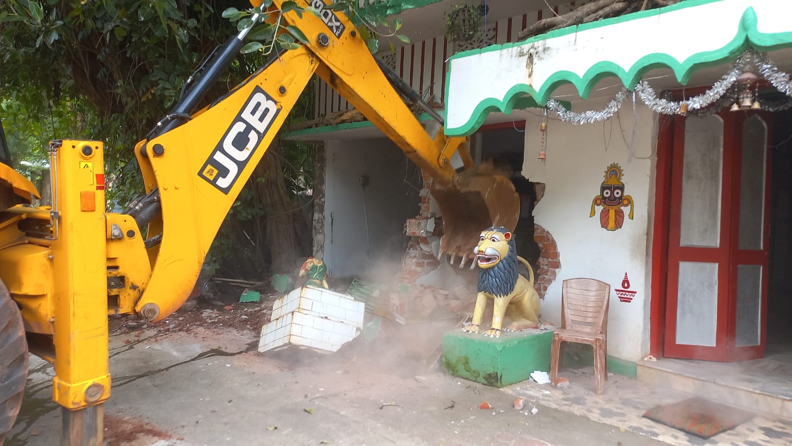 A temple being demolished at Kharavela Nagar, Bhubaneswar