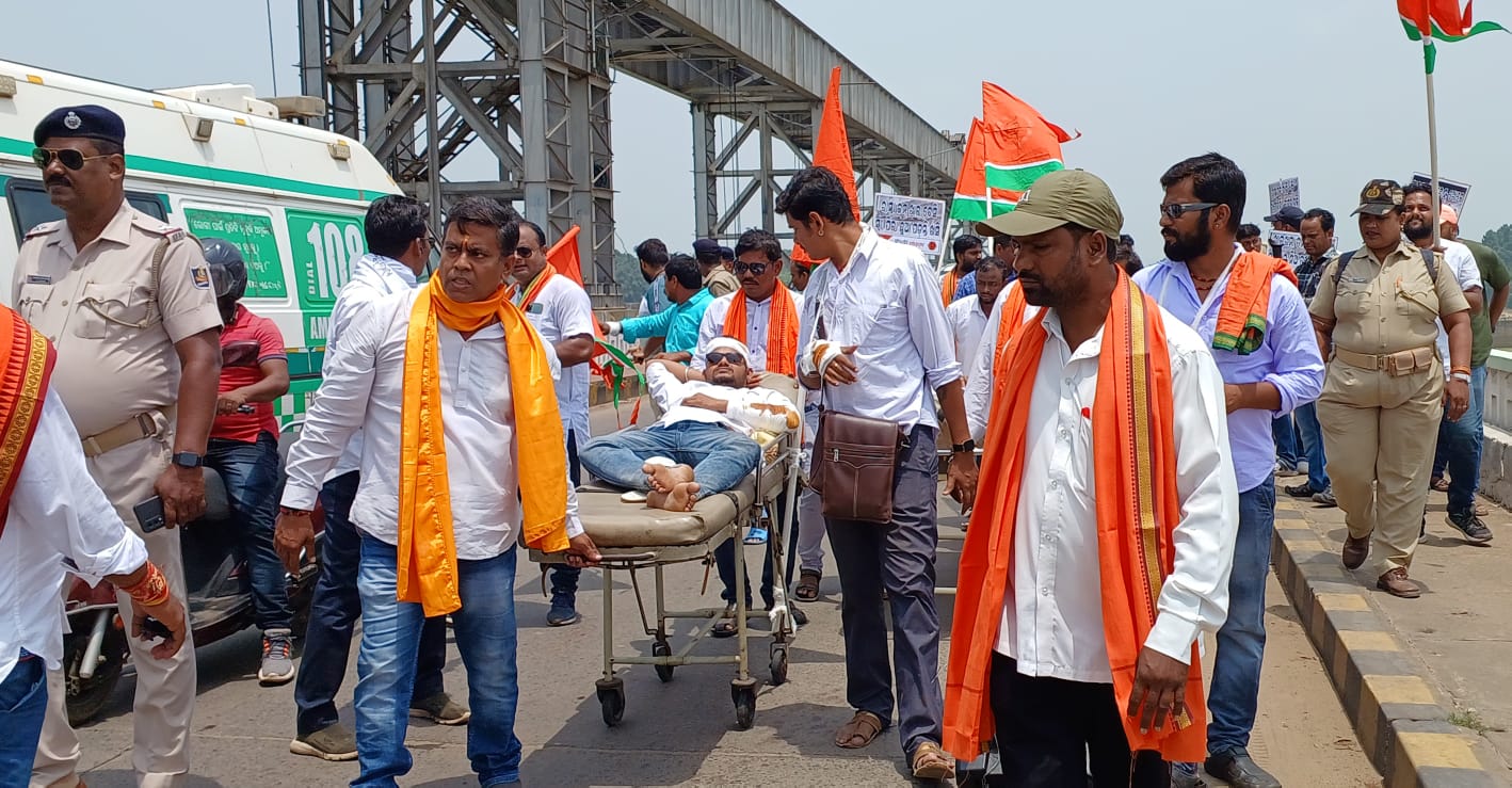 Unique protest using stretchers, bandages to highlight poor shape of road at Jobra anicut in Cuttack