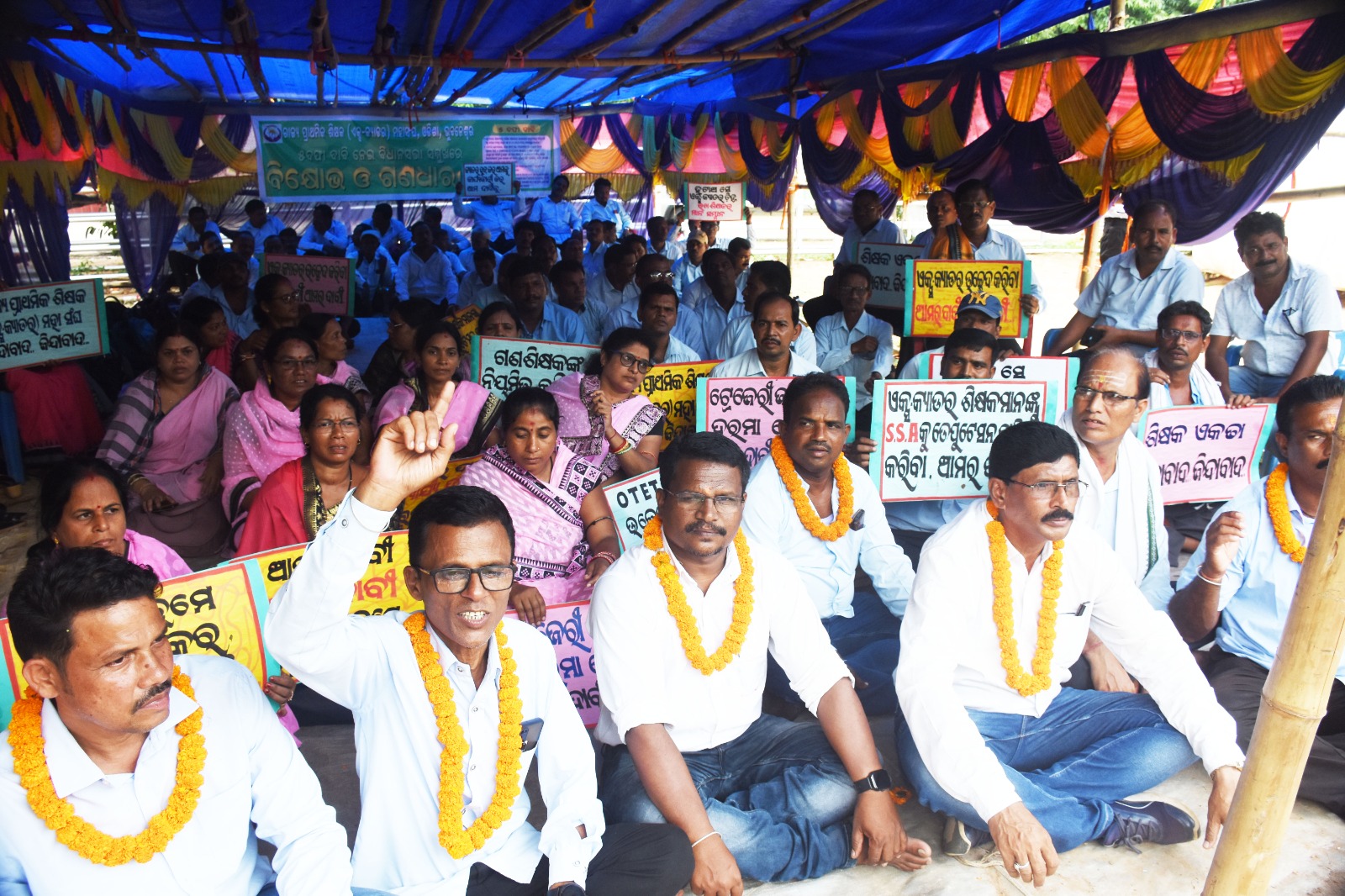 Primary school teachers protest in Bhubaneswar seeking fulfillment of their 5-point charter of demands