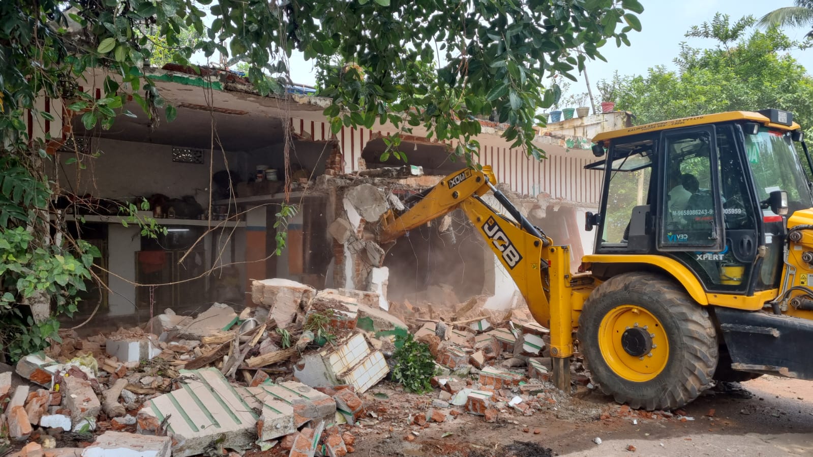 A temple being demolished at Kharavela Nagar, Bhubaneswar