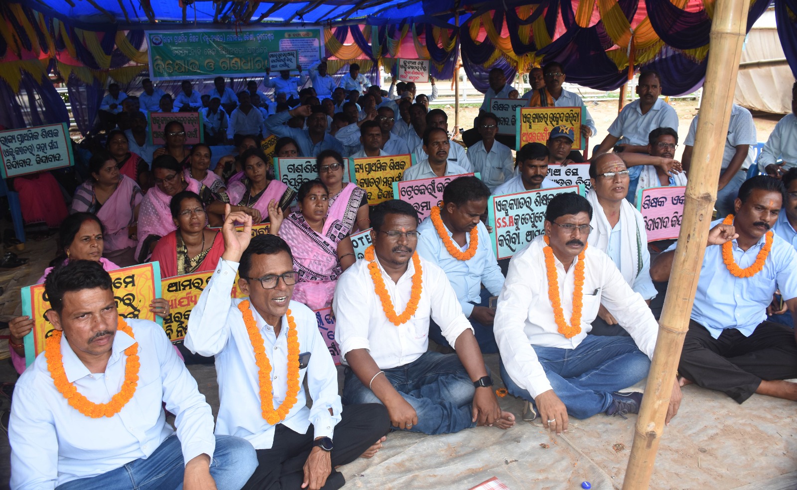 Primary school teachers protest in Bhubaneswar seeking fulfillment of their 5-point charter of demands