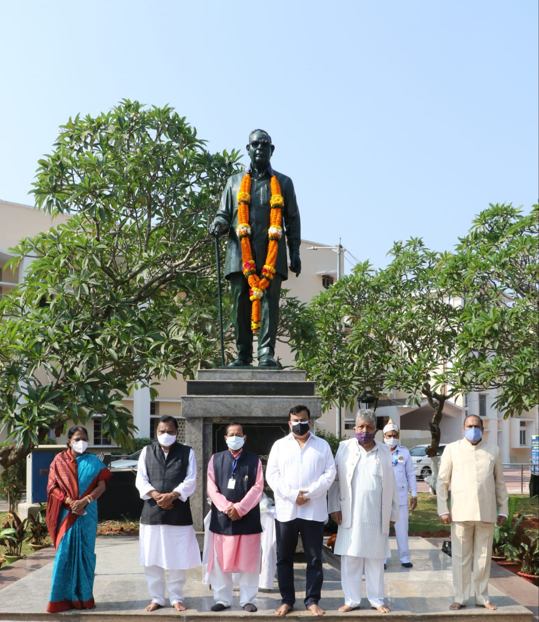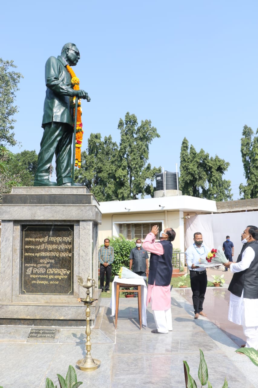 Speaker Surjya Narayan Patro garlands statue of Harekrushna Mahatab in Odisha Assembly premises on his 121st birth anniversary