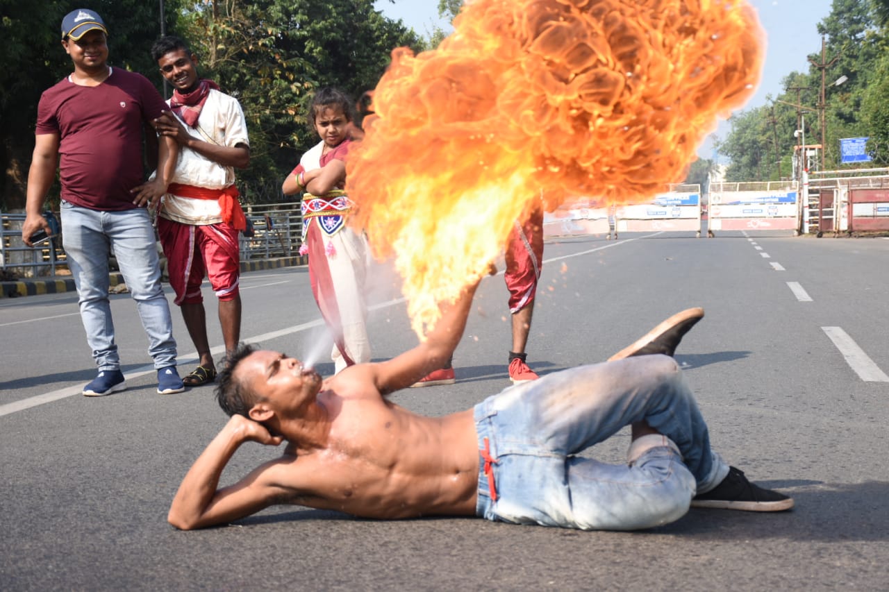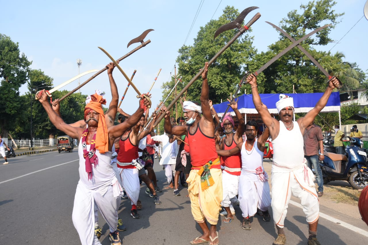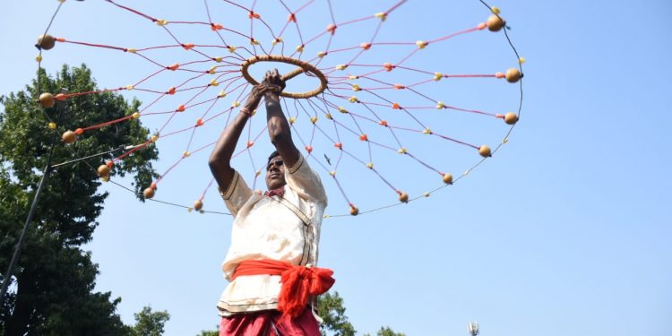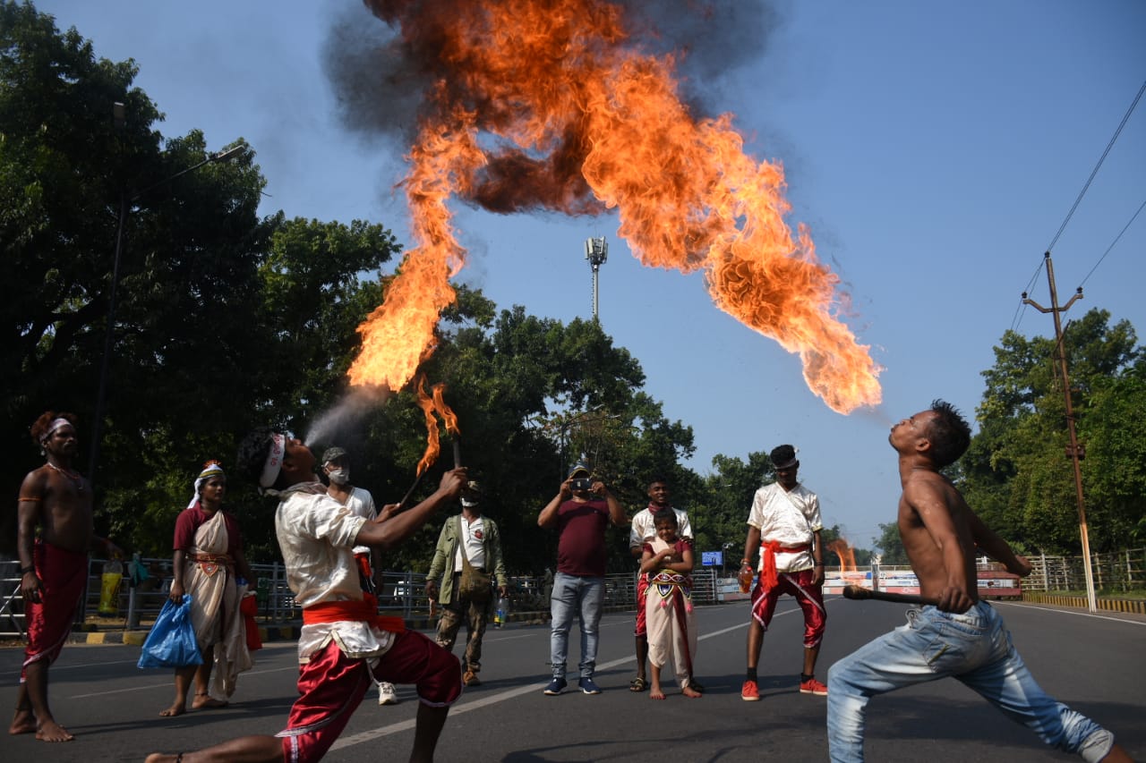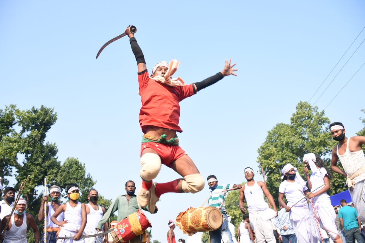 Display of traditional martial arts at PMG Square in Bhubaneswar on occasion of 121st birth anniversary of Harekrushna Mahatab