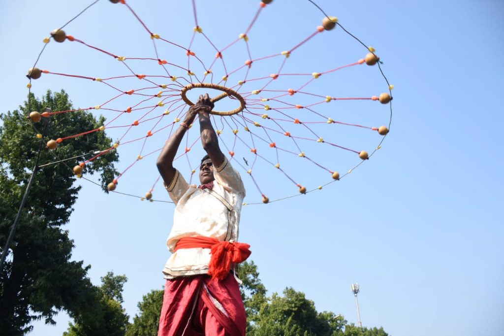 Display of traditional martial arts at PMG Square in Bhubaneswar on occasion of 121st birth anniversary of Harekrushna Mahatab